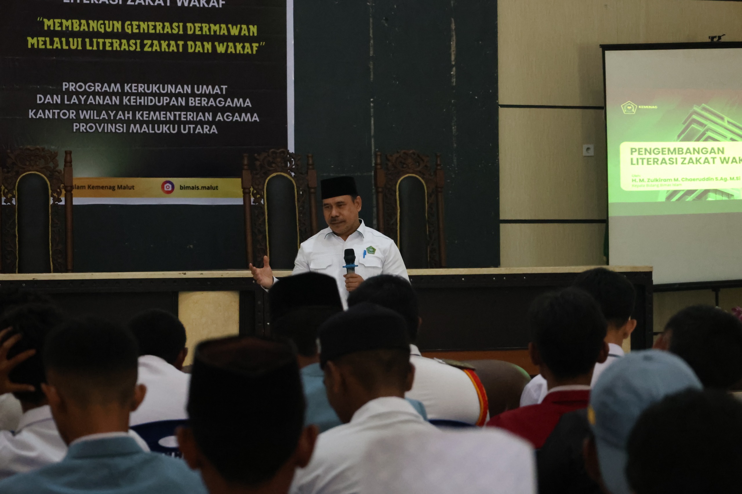 KANTOR Wilayah Kementerian Agama Provinsi Maluku Utara melalui Bidang Bimbingan Masyarakat Islam menggelar kegiatan pendampingan Ambassador Literasi Zakat dan Wakaf dengan mengusung tema Membangun Generasi Dermawan melalui Literasi Zakat dan Wakaf. Kegiatan yang dilaksanakan pada Selasa (16/12/2025), bertujuan menanamkan pemahaman sejak dini kepada para siswa tentang pentingnya zakat dan wakaf sebagai instrumen keuangan sosial yang berdampak luas bagi kesejahteraan umat.