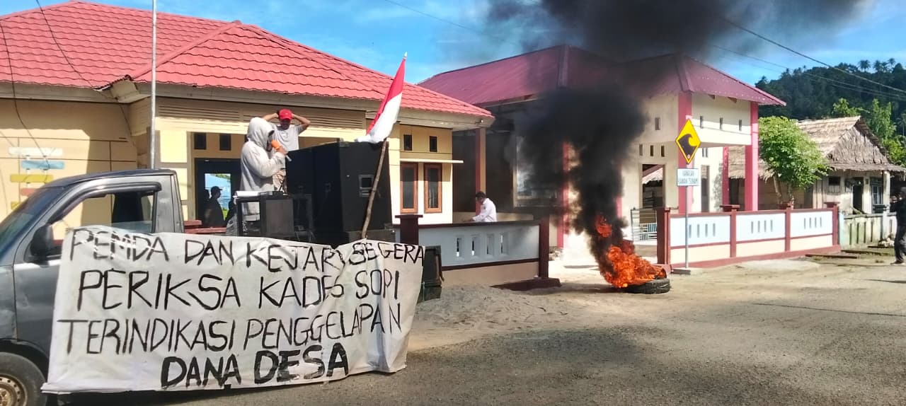 PULUHAN warga Desa Sopi menggelar aksi di kantor Camat Morotai Jaya untuk menuntut Pemerintah Daerah dan Kejaksaan Negeri memeriksa Kepala Desa terkait dugaan penyalahgunaan dana desa. Aksi dimulai pukul 09.00 WIT, dengan peserta menyampaikan dugaan ketidaktransparanan pengelolaan anggaran desa. Rabu, (17/12/2025).