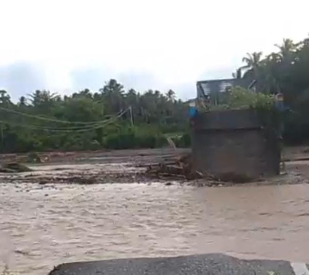 BANJIR besar melanda wilayah Galela Pesisir, Kecamatan Galela Utara, Kabupaten Halmahera Utara, Kamis (08/01/2026), mengakibatkan jembatan utama penghubung antar kecamatan dan desa terputus total. Derasnya arus sungai akibat hujan berintensitas tinggi menggerus pondasi jembatan hingga amblas dan mengalami kerusakan parah.