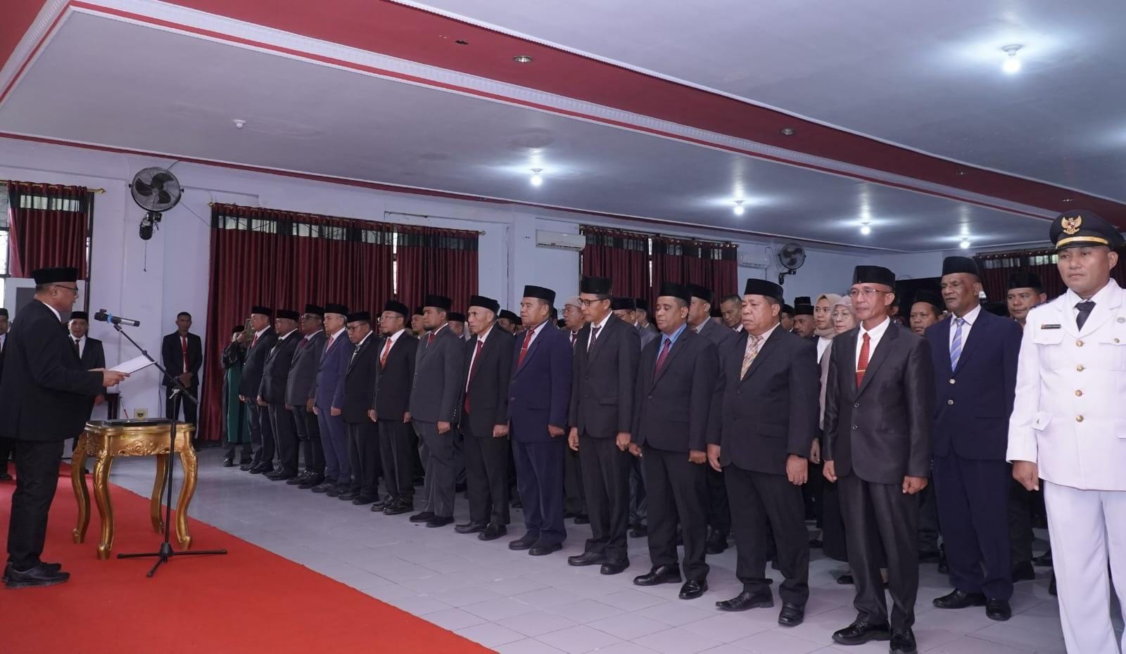TERAPKAN Program Manajemen Talenta ASN, sebanyak 104 orang pejabat yang terdiri dari Pimpinan Tinggi Pratama, Administrator, Camat, Lurah, Jabatan Pengawas serta Jabatan Fungsional di lingkungan Pemerintah Kota Tidore Kepulauan resmi dilantik oleh Wali Kota Tidore Kepulauan Muhammad Sinen di Aula Kantor Wali Kota, Rabu (7/1/2026) Pagi.