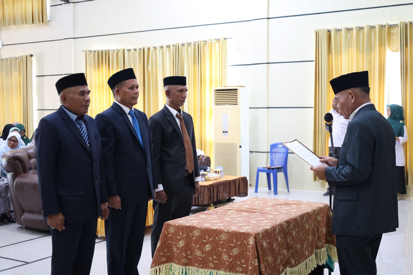 KEPALA Kantor Wilayah Kementerian Agama Provinsi Maluku Utara melantik dan mengambil sumpah jabatan pejabat administrator dan pejabat pengawas di lingkungan Kanwil Kemenag Maluku Utara dalam rangka mengisi kekosongan jabatan pada sejumlah satuan kerja, bertempat di Aula Kanwil Kemenag Maluku Utara, Senin (12/01/26).