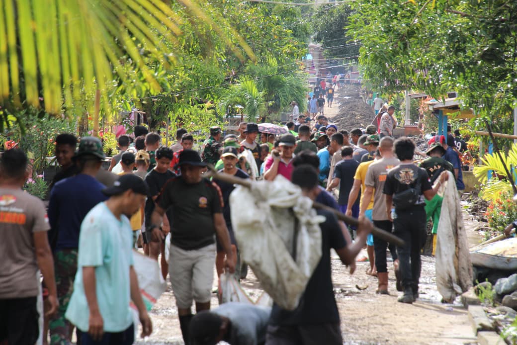 TIM Satgas Penanganan Bencana Banjir di Desa Doitia, Loloda Utara, telah membersihkan seluruh bangunan rumah dari material lumpur dan drainase dari isian tanah pasir.
