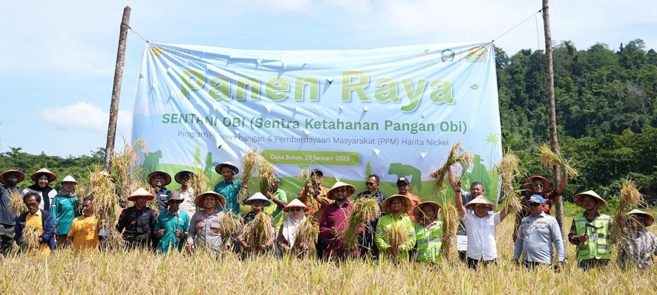 PKOLABORASI antara Harita Nickel dan Pemerintah Kabupaten Halmahera Selatan (Halsel) dalam memperkuat ketahanan pangan lokal membuahkan hasil positif. Kedua pihak menggelar panen raya padi sawah seluas 12 hektare sawah di Desa Buton, Kecamatan Obi, Jumat (23/1), dengan proyeksi peningkatan produktivitas yang signifikan.