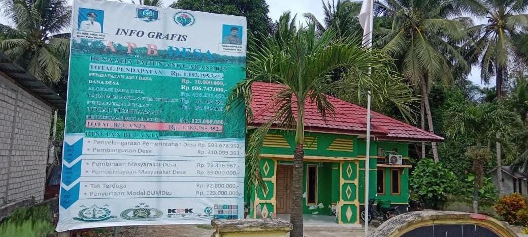 Namun, fakta di lapangan justru menunjukkan kondisi yang berbanding terbalik. Hingga saat ini, baliho yang terpasang di kantor Desa Aha masih menampilkan APBDes Tahun Anggaran 2025, bukan APBDes 2026 sebagaimana yang diklaim siap cetak.
