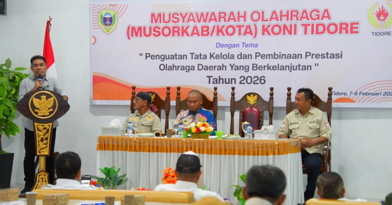 WAKIL Wali Kota Tidore Kepulauan Ahmad Laiman resmi ditetapkan sebagai Ketua Umum Komite Olahraga Nasional Indonesia (KONI) Kota Tidore Kepulauan Periode 2026-20230 dalam Musyawarah Olahraga (Musorkab/Kota) KONI Tidore yang berlangsung di Aula Penginapan Bougenville, Sabtu (7/2/2026) Sore.