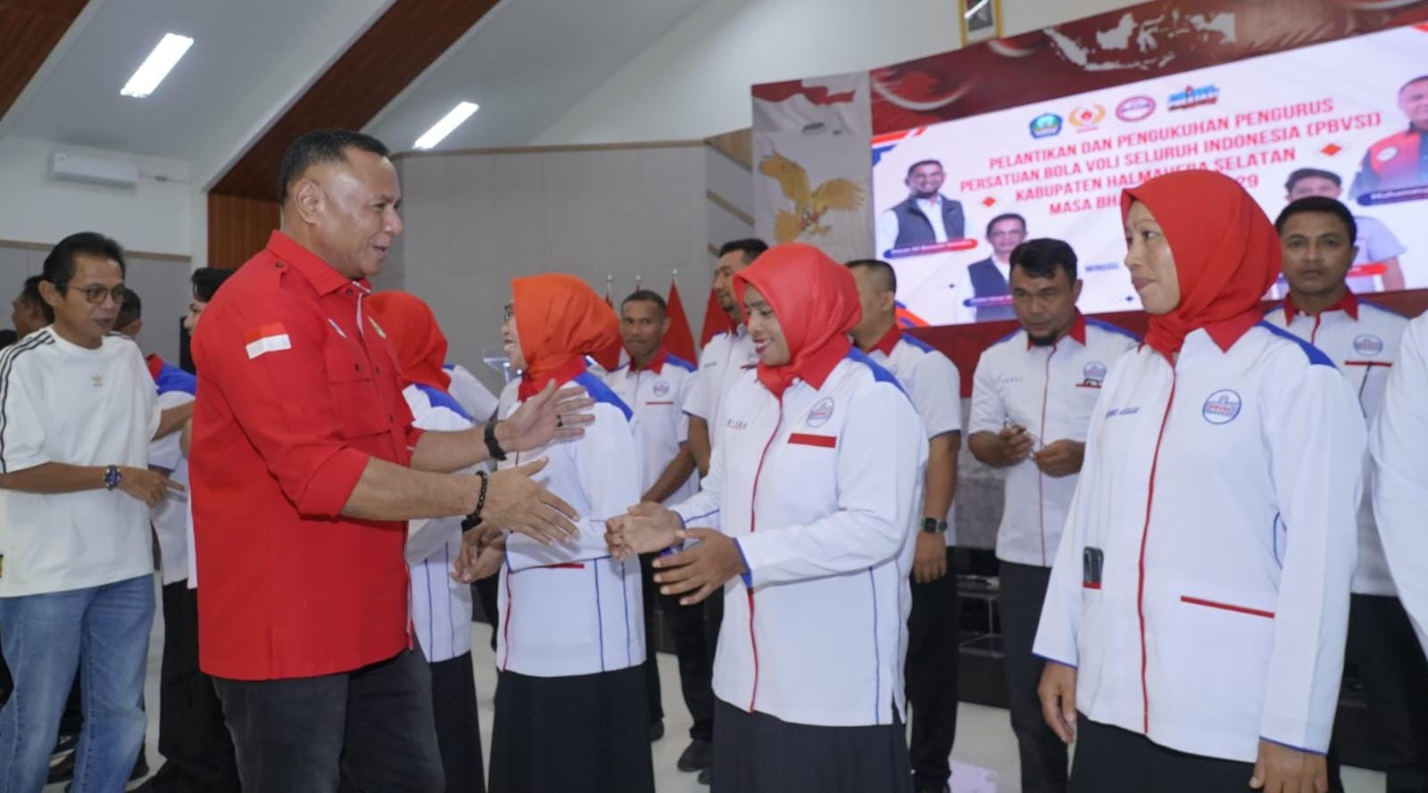 WALI Kota Tidore Kepulauan Muhammad Sinen selaku Ketua Umum Persatuan Bola Voli Seluruh Indonesia (PBVSI) Provinsi Maluku Utara menghadiri sekaligus memberikan sambutan pada Acara Pelantikan Pengurus PBVSI Kabupaten Halmahera Selatan di Aula Kantor Bupati Halsel, Minggu (15/2/2026) Siang.