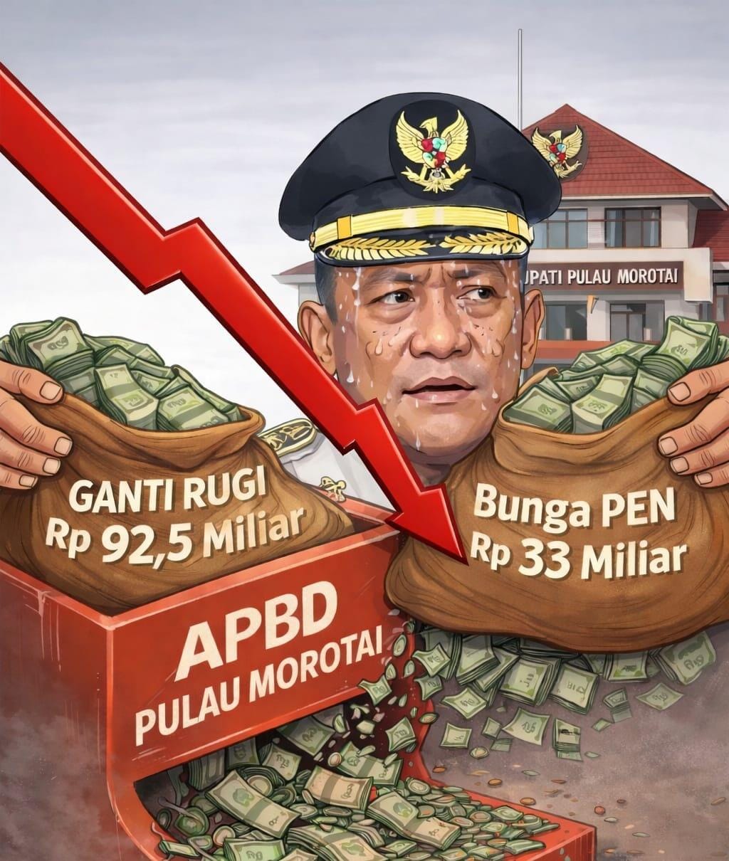 Namun, tekanan tidak berhenti di situ. Di tengah kewajiban ganti rugi tersebut, APBD Morotai juga disebut harus menanggung beban bunga pinjaman PEN yang nilainya mencapai disebut sekitar Rp33 miliar per tahun.